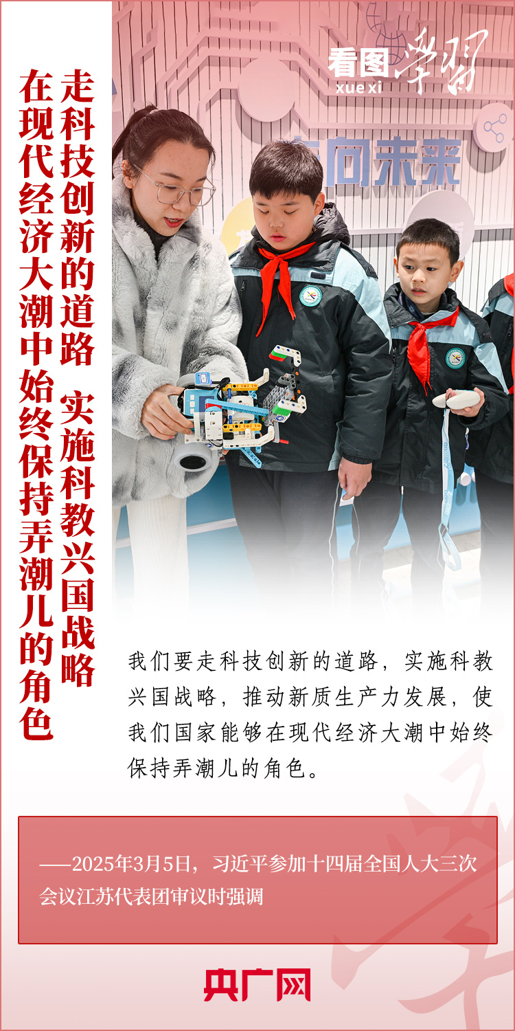 “我們要走科技創(chuàng)新的道路,實(shí)施科教興國(guó)戰(zhàn)略,推動(dòng)新質(zhì)生產(chǎn)力發(fā)展,使我們國(guó)家能夠在現(xiàn)代經(jīng)濟(jì)大潮中始終保持弄潮兒的角色?!苯衲耆珖?guó)兩會(huì)期間,習(xí)近平總書記就科技和產(chǎn)業(yè)創(chuàng)新、科技人才培養(yǎng)等作出深刻闡釋,強(qiáng)調(diào)要“堅(jiān)持教育、科技、人才一起抓”,為科技創(chuàng)新指明方向。