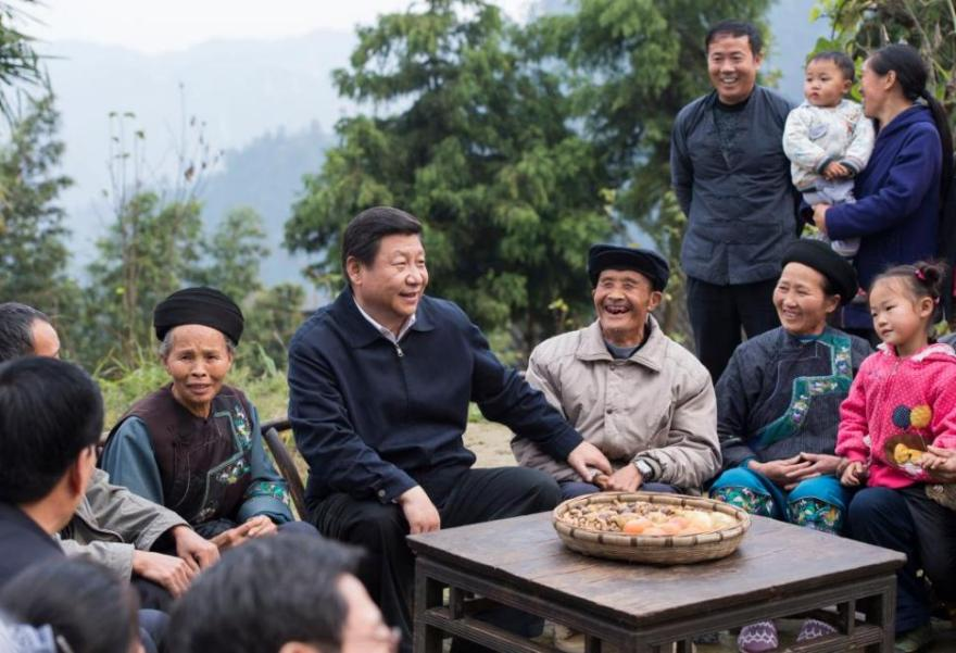 2013年11月3日,習近平總書記在湘西十八洞村考察時,同村干部和村民座談。