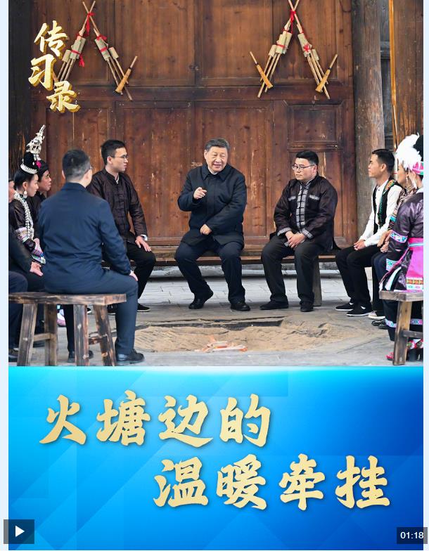 3月17日,習(xí)近平總書記來(lái)到貴州省黔東南州黎平縣肇興侗寨考察調(diào)研。信團(tuán)鼓樓內(nèi),一方火塘邊,總書記同村干部和村民代表圍坐一起,共話鄉(xiāng)村全面振興。