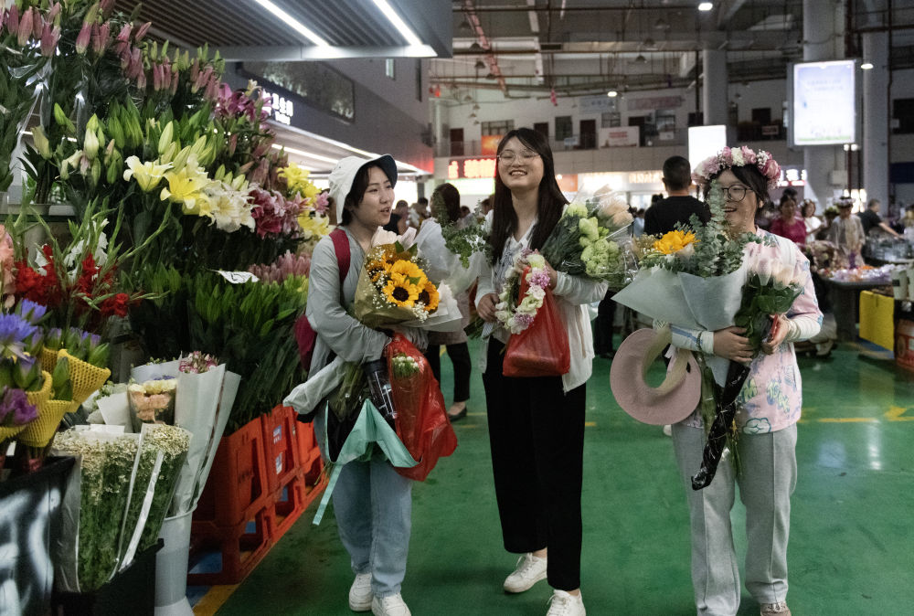 2024年11月25日,消費者在云南省昆明市斗南花卉市場內(nèi)選購花卉。