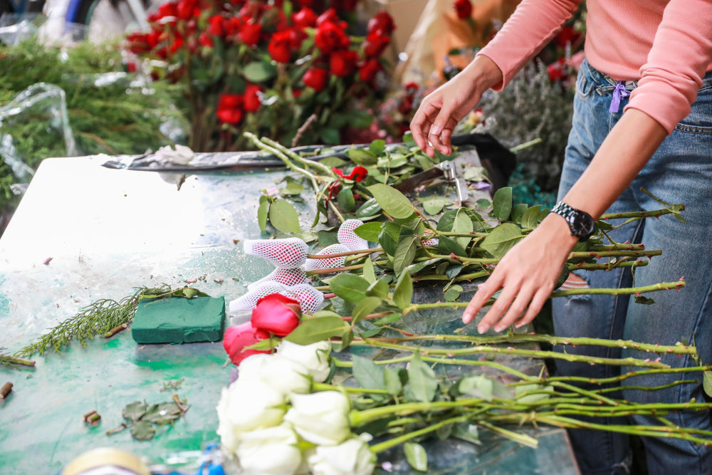 2019年2月14日,在泰國曼谷帕空鮮花市場的一家花店,工作人員將從云南進口的鮮花制作成花束和花盒。東南亞是云南花卉的傳統(tǒng)市場,在“一帶一路”倡議推動下,中國與東南亞國家相互開放的產(chǎn)業(yè)合作,為雙方商貿(mào)活動注入新動力。隨著昆曼國際大通道打通,經(jīng)過采摘、分級、修枝、包裝、拍賣等過程,云南鮮花只需近40小時的冷鏈運輸便可抵達曼谷。