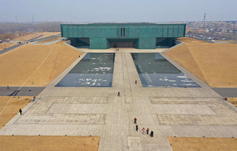“商邑翼翼,四方之極。”位于太行山東麓的河南安陽小屯村一帶,是殷墟遺址所在地。三千多年前,繁盛的城市文明、舉世矚目的文字文明以及高度發(fā)展的手工業(yè)等,共同構(gòu)筑了早期中國的華彩篇章。2024年2月,殷墟博物館新館正式開館,成為首個全景式展現(xiàn)商文明的國家重大考古專題博物館(2025年2月21日攝,無人機照片)。