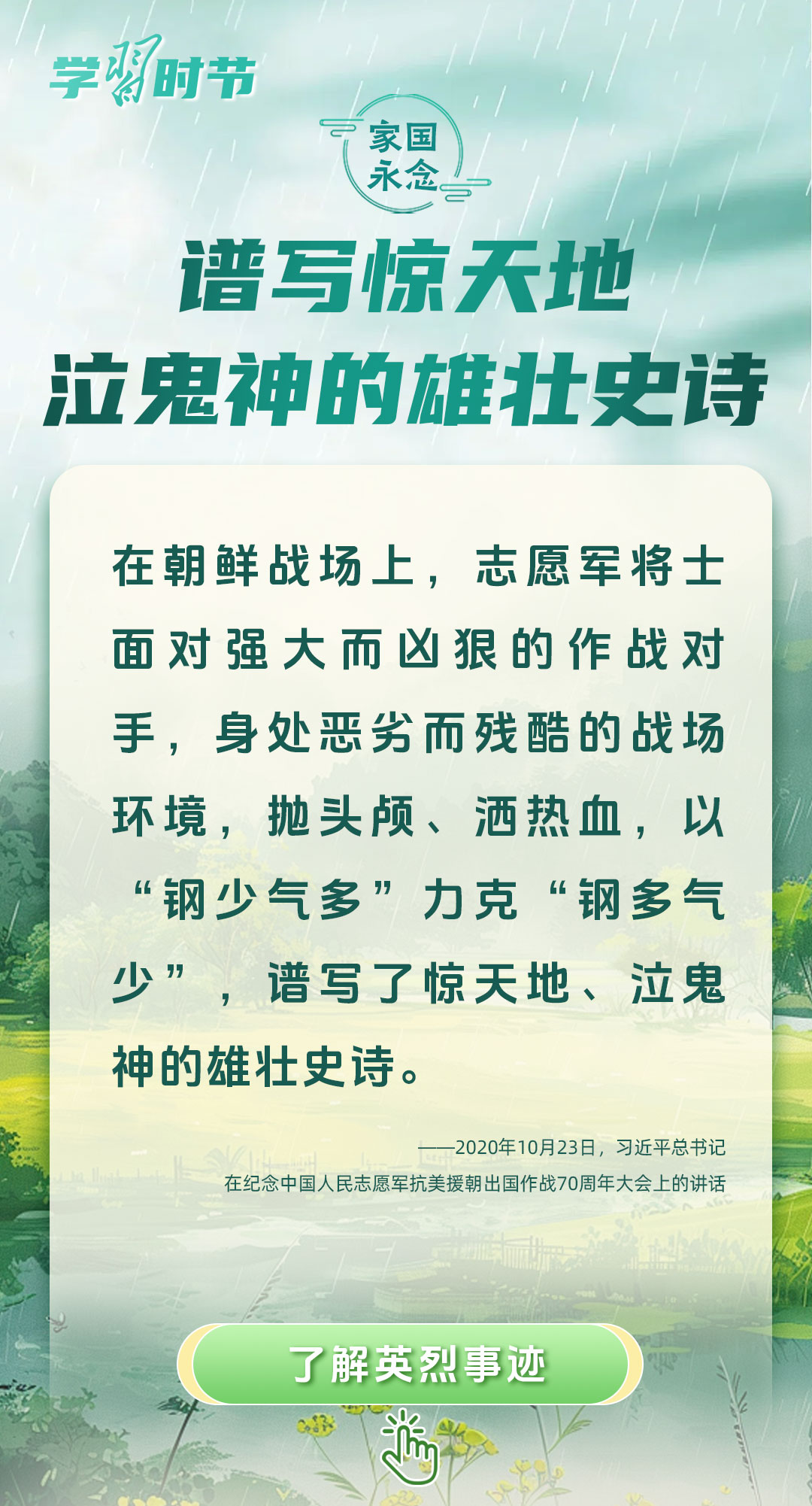 今年是中國(guó)人民抗日戰(zhàn)爭(zhēng)暨世界反法西斯戰(zhàn)爭(zhēng)勝利80周年、中國(guó)人民志愿軍抗美援朝出國(guó)作戰(zhàn)75周年。習(xí)近平總書(shū)記曾說(shuō):“對(duì)一切為國(guó)家、為民族、為和平付出寶貴生命的人們,不管時(shí)代怎樣變化,我們都要永遠(yuǎn)銘記他們的犧牲和奉獻(xiàn)?!苯裉煳覀兯鶕碛械囊磺校瑹o(wú)不凝結(jié)著英雄、英烈們的奉獻(xiàn)付出乃至巨大犧牲。