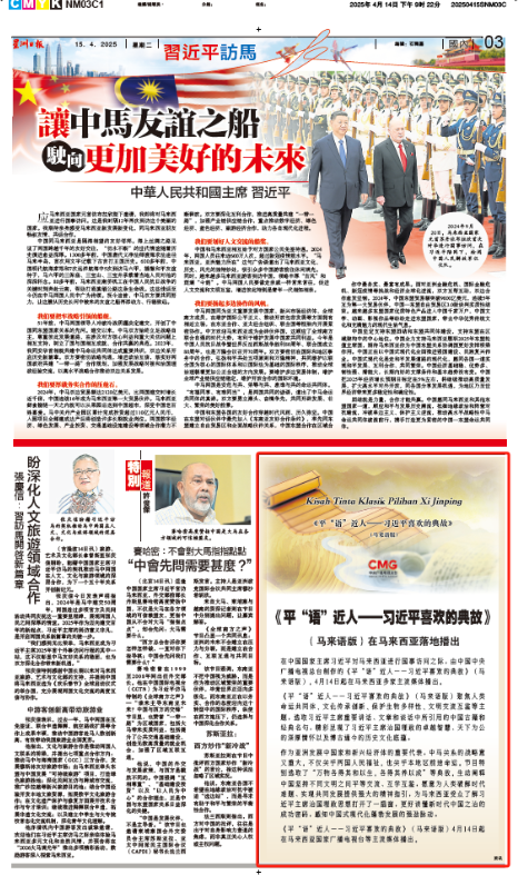 4月15日,馬來西亞中文、英文、馬來文主流媒體《星洲日報》《星報》《陽光日報》分別刊發(fā)節(jié)目在馬來西亞落播的消息。文章指出,《平“語”近人——習近平喜歡的典故》(馬來語版)特別選取了“萬物各得其和以生,各得其養(yǎng)以成”等典故,生動闡釋中國堅持不同文明之間平等交流、互學互鑒,愿意為人類破解時代難題、實現(xiàn)共同發(fā)展提供強大的精神指引,有助于馬來西亞民眾更好讀懂新時代中國之治的成功密碼,感知中國式現(xiàn)代化蓬勃發(fā)展的強勁脈動。