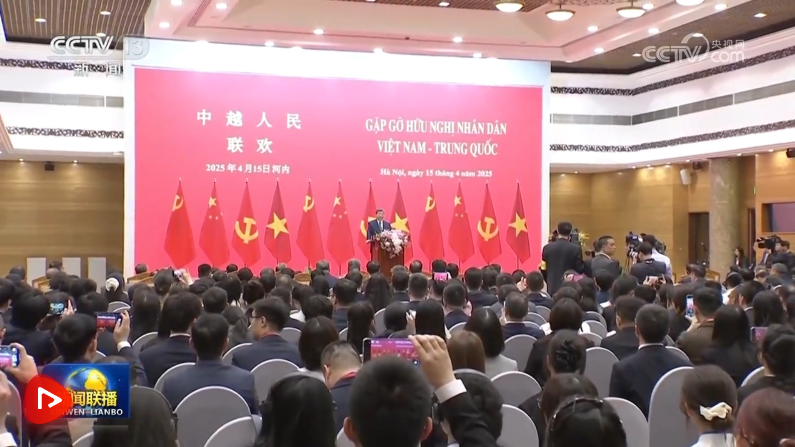 4月15日上午,中共中央總書記、國家主席習(xí)近平在河內(nèi)國際會議中心同越共中央總書記蘇林、越南國家主席梁強(qiáng)共同會見中越人民大聯(lián)歡活動代表。