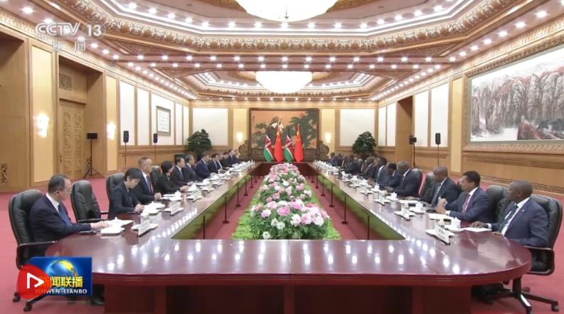 4月24日上午,國(guó)家主席習(xí)近平在北京人民大會(huì)堂同來(lái)華進(jìn)行國(guó)事訪問(wèn)的肯尼亞總統(tǒng)魯托舉行會(huì)談。兩國(guó)元首一致同意將雙邊關(guān)系定位提升至新時(shí)代中肯命運(yùn)共同體。