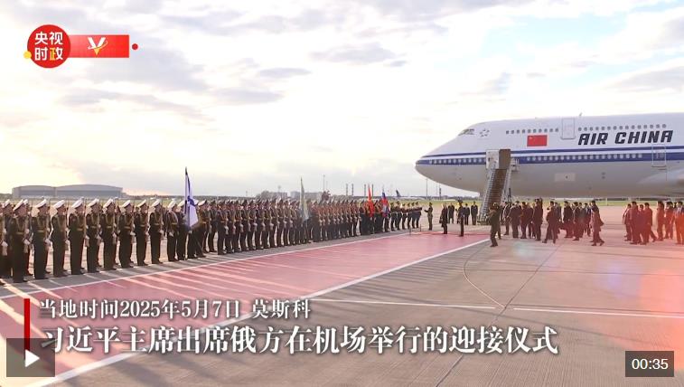 當?shù)貢r間5月7日晚,國家主席習近平乘專機抵達莫斯科,應(yīng)俄羅斯總統(tǒng)普京邀請,對俄羅斯進行國事訪問并出席紀念蘇聯(lián)偉大衛(wèi)國戰(zhàn)爭勝利80周年慶典。