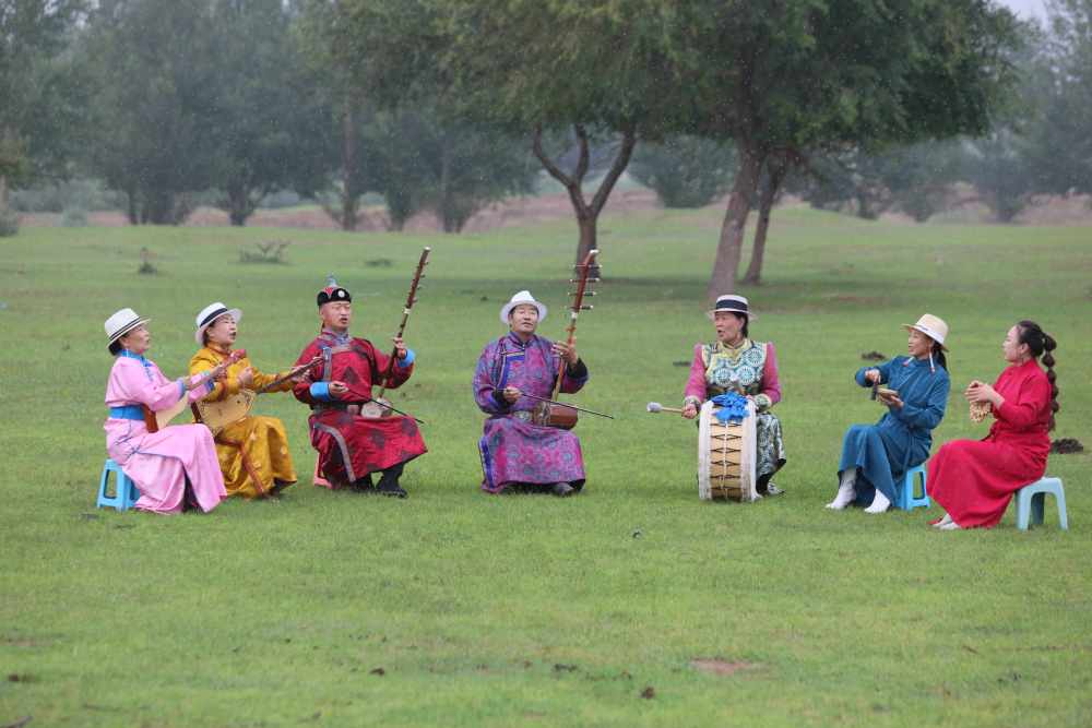 2024年7月16日,《格薩(斯)爾》史詩說唱傳承人在內(nèi)蒙古赤峰市巴林右旗戶外表演。(胡斯楞攝)