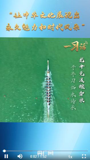 龍舟競渡粽香濃,千年習俗永傳承。端午節(jié)是我們四大傳統(tǒng)節(jié)日之一,也是中華民族獨具特色的文化載體,體現了中國人崇德尚賢、心懷家國的深厚情懷。讓我們在濃濃的傳統(tǒng)文化氛圍中,跟著總書記學習傳承中華優(yōu)秀傳統(tǒng)文化,進一步推動中華優(yōu)秀傳統(tǒng)文化創(chuàng)造性轉化和創(chuàng)新性發(fā)展,不斷創(chuàng)造中華文化新的輝煌。