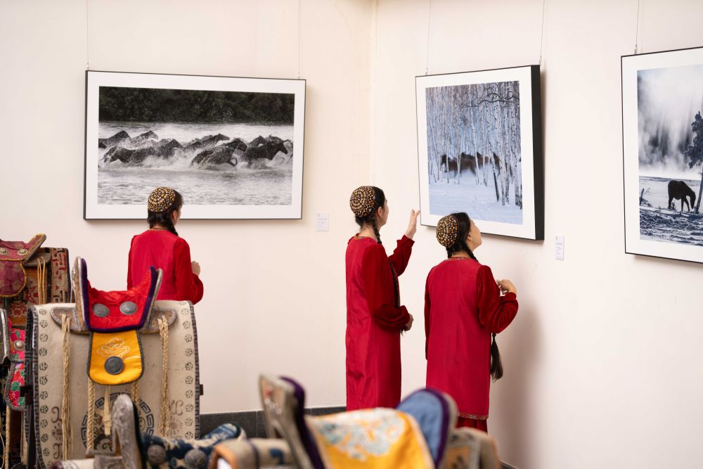 2025年6月3日,人們在土庫曼斯坦阿什哈巴德參觀“騏驥馳騁——2025中國馬文化展”。展覽從中國源遠(yuǎn)流長的馬文化切入,連接中土兩國人民對于馬的審美喜好與情感寄托。