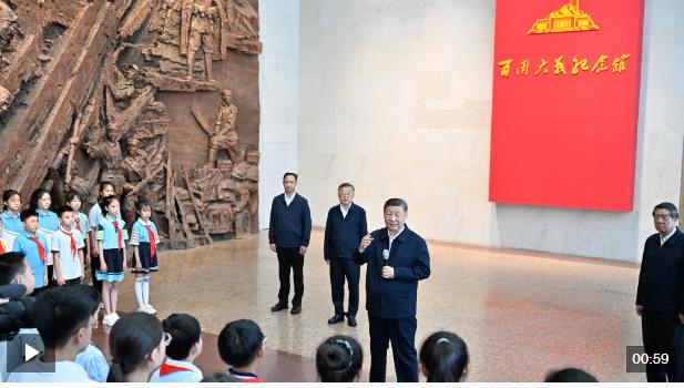 7日下午,習(xí)近平總書記來到山西省陽泉市,向百團大戰(zhàn)烈士敬獻花籃,參觀百團大戰(zhàn)紀念館。在紀念館大廳,習(xí)近平同青少年學(xué)生和紀念館工作人員親切交流。他對大家說,今天來到這里有特殊意義。七七事變是全民族抗戰(zhàn)的開始,中國共產(chǎn)黨是全民族抗戰(zhàn)的中流砥柱,百團大戰(zhàn)讓全世界看到了中國共產(chǎn)黨和中國人民抗戰(zhàn)的意志和力量。我們堅持14年抗戰(zhàn),作出了巨大犧牲。前事不忘,后事之師。孩子們要爭做民族的脊梁,一定要把我們國家建得強盛起來,要為全世界的和平作貢獻。希望寄托在你們身上,未來是屬于你們的。希望你們好好努力、奮發(fā)圖強,做一個堂堂正正、光榮自豪的中國人。