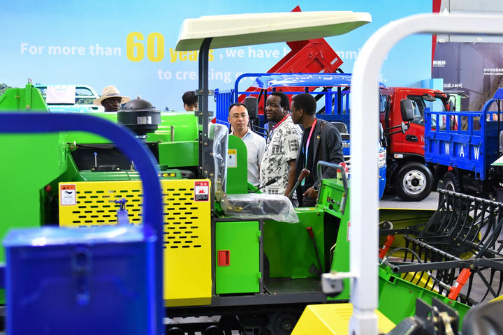 2025年6月14日,觀眾在長沙國際會展中心參觀農(nóng)機設備。6月12日至15日,第四屆中國—非洲經(jīng)貿(mào)博覽會在湖南長沙舉行。新華社記者 陳振海 攝