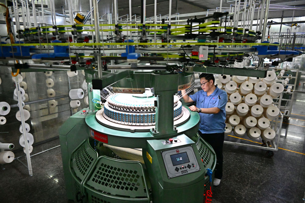 2025年3月25日,山東省青島市即墨區(qū)一家智慧紡紗企業(yè)的技術(shù)人員在維護(hù)生產(chǎn)高檔布料的自動(dòng)化圓機(jī)。近年來,即墨區(qū)引導(dǎo)民營企業(yè)加大新技術(shù)、新裝備、新工藝的研發(fā)和投入,加快信息化和工業(yè)化融合升級(jí)改造。同時(shí),通過對(duì)接企業(yè)用工需求、實(shí)施新技能培訓(xùn)等舉措,促進(jìn)紡織服裝產(chǎn)業(yè)可持續(xù)高質(zhì)量發(fā)展,也讓群眾在家門口實(shí)現(xiàn)穩(wěn)定就業(yè)和增收。