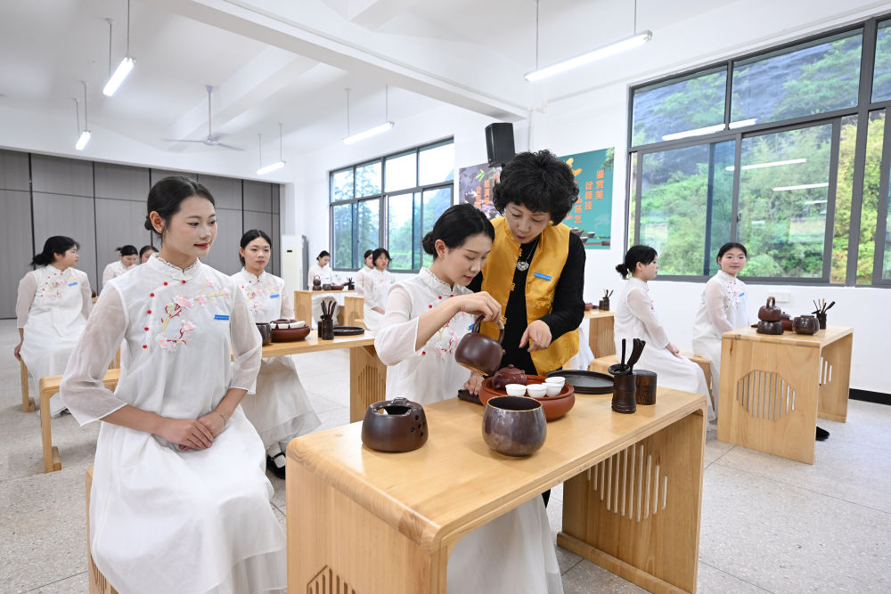 2025年5月8日,福建省武夷山旅游職業(yè)中專學(xué)校的茶藝?yán)蠋熢诮淌诓杷?。近年來,武夷山市依托?dāng)?shù)夭璁a(chǎn)業(yè)優(yōu)勢,持續(xù)推進(jìn)茶文化、茶技能教育走進(jìn)校園,在當(dāng)?shù)芈殬I(yè)學(xué)校重點(diǎn)開設(shè)了茶藝、茶葉加工、茶營銷等專業(yè),為當(dāng)?shù)夭璁a(chǎn)業(yè)發(fā)展、茶文化傳播培養(yǎng)職業(yè)技能人才。