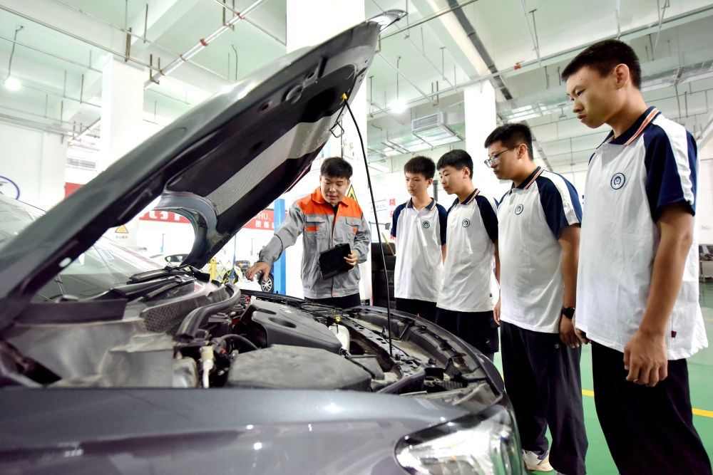 2024年6月7日,河北省邢臺(tái)市威縣職業(yè)技術(shù)教育中心教師指導(dǎo)學(xué)生學(xué)習(xí)汽車維修技術(shù)。近年來,威縣加大職業(yè)技術(shù)人才培養(yǎng)力度,通過與企業(yè)聯(lián)合辦學(xué),創(chuàng)新校企合作、定向培養(yǎng)、工學(xué)結(jié)合等辦學(xué)模式,拓寬職業(yè)教育畢業(yè)生就業(yè)渠道。