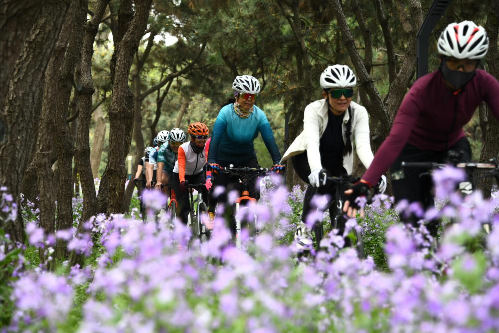 2025年4月19日,自行車運(yùn)動(dòng)愛好者在山東日照的海濱騎行綠道騎行。