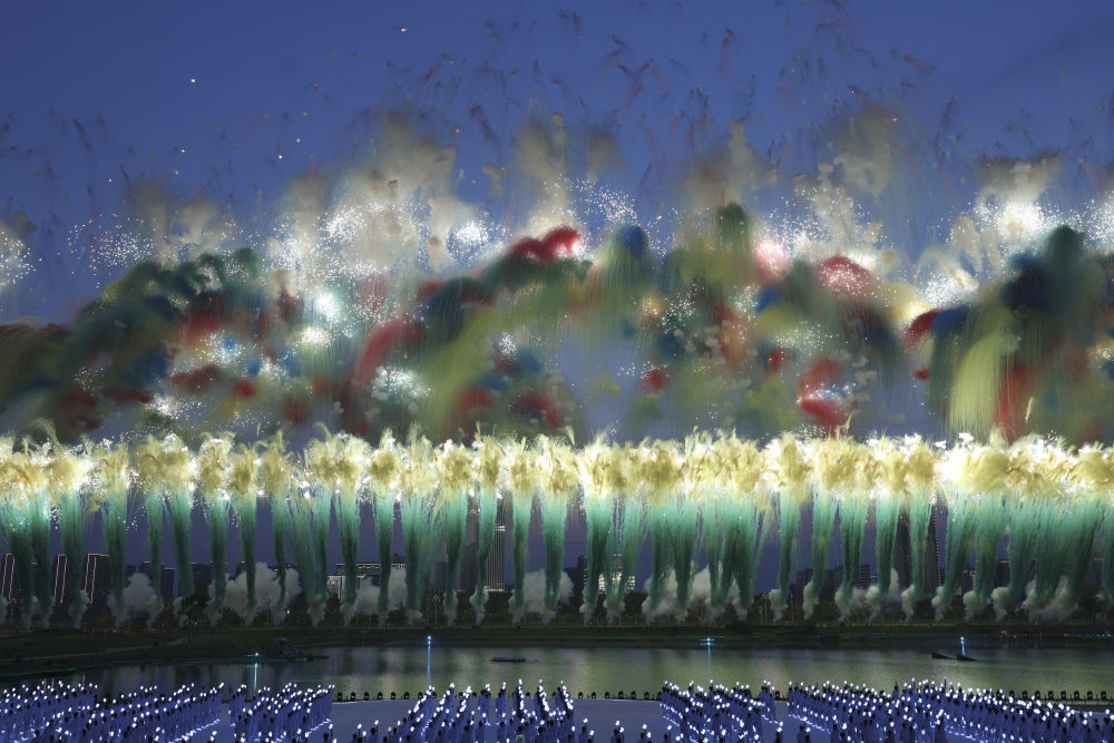 2025年8月7日在第12屆世界運(yùn)動(dòng)會(huì)開幕式上拍攝的焰火表演。