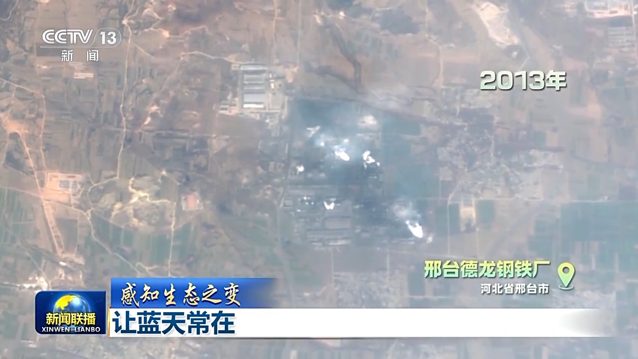 這是當時,環(huán)境監(jiān)測衛(wèi)星拍到的德龍鋼鐵廠,霧霾最嚴重的時候幾乎看不出廠區(qū)輪廓。而如今,卻是清晰可見,綠意蔥蔥。