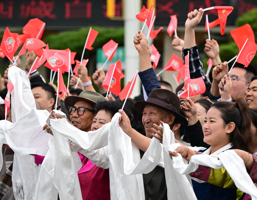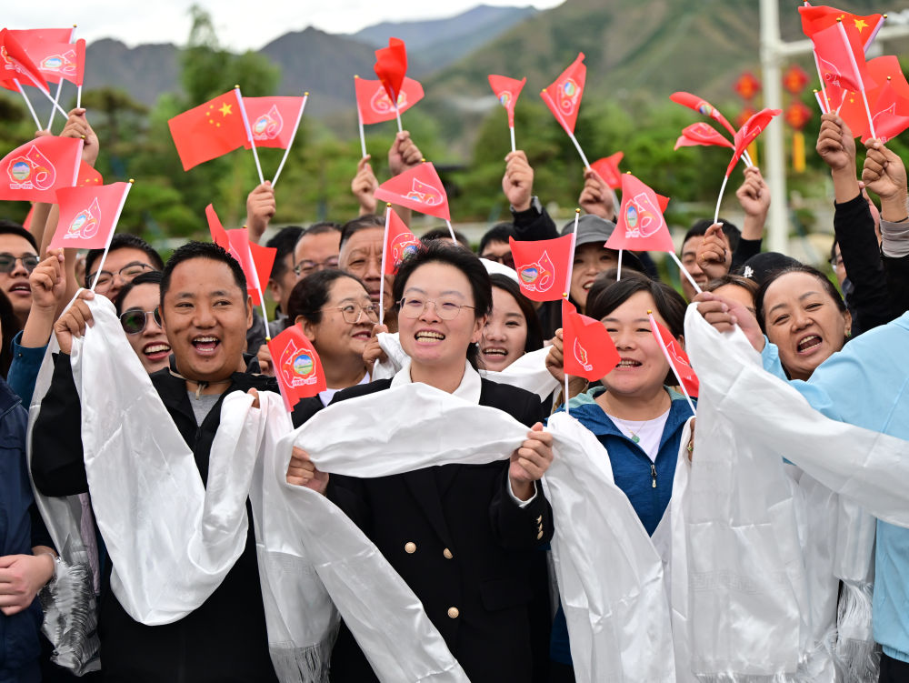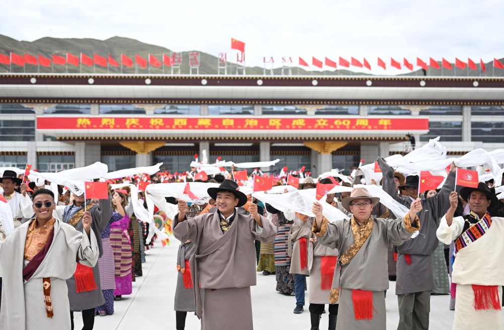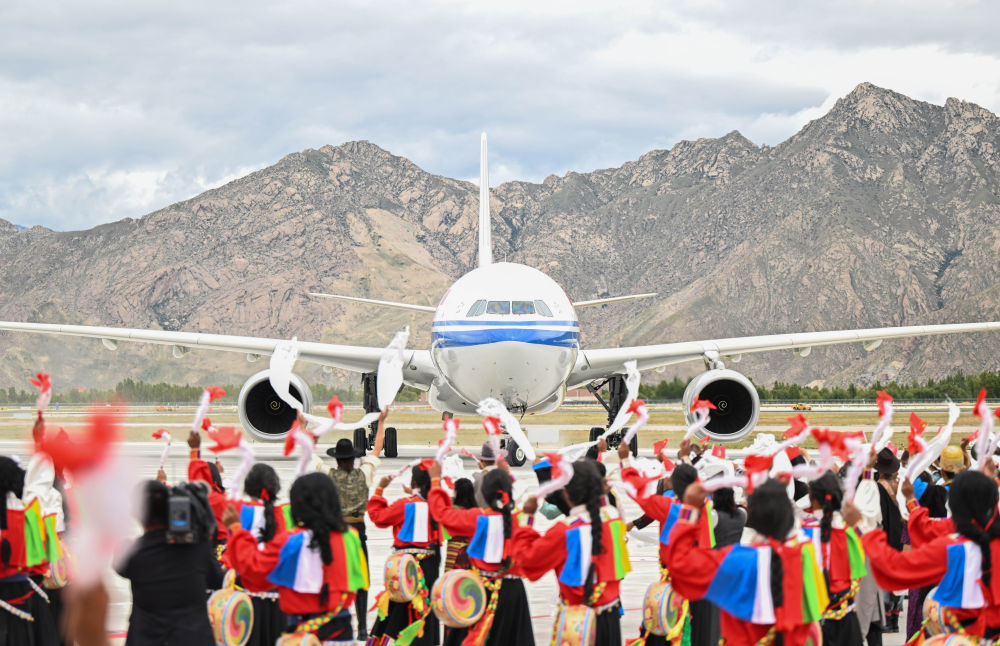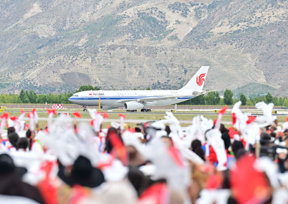 中共中央總書(shū)記、國(guó)家主席、中央軍委主席習(xí)近平率中央代表團(tuán)20日中午乘專(zhuān)機(jī)抵達(dá)拉薩,出席西藏自治區(qū)成立60周年慶祝活動(dòng)。習(xí)近平等在機(jī)場(chǎng)和拉薩市區(qū)受到西藏各族群眾的熱烈歡迎。