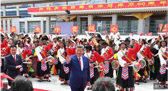 習(xí)近平離開(kāi)西藏時(shí),各族群眾紛紛來(lái)到拉薩市區(qū)的沿途道路兩旁,揮舞紅旗、手捧哈達(dá),歡呼著向總書(shū)記問(wèn)好,向總書(shū)記表達(dá)由衷的愛(ài)戴。拉薩貢嘎機(jī)場(chǎng),身著節(jié)日盛裝的干部群眾揮舞著紅旗和花束,載歌載舞,高喊“扎西德勒”,表達(dá)高原兒女對(duì)以習(xí)近平同志為核心的黨中央的感激之情、對(duì)建設(shè)社會(huì)主義現(xiàn)代化新西藏的堅(jiān)定信心。
