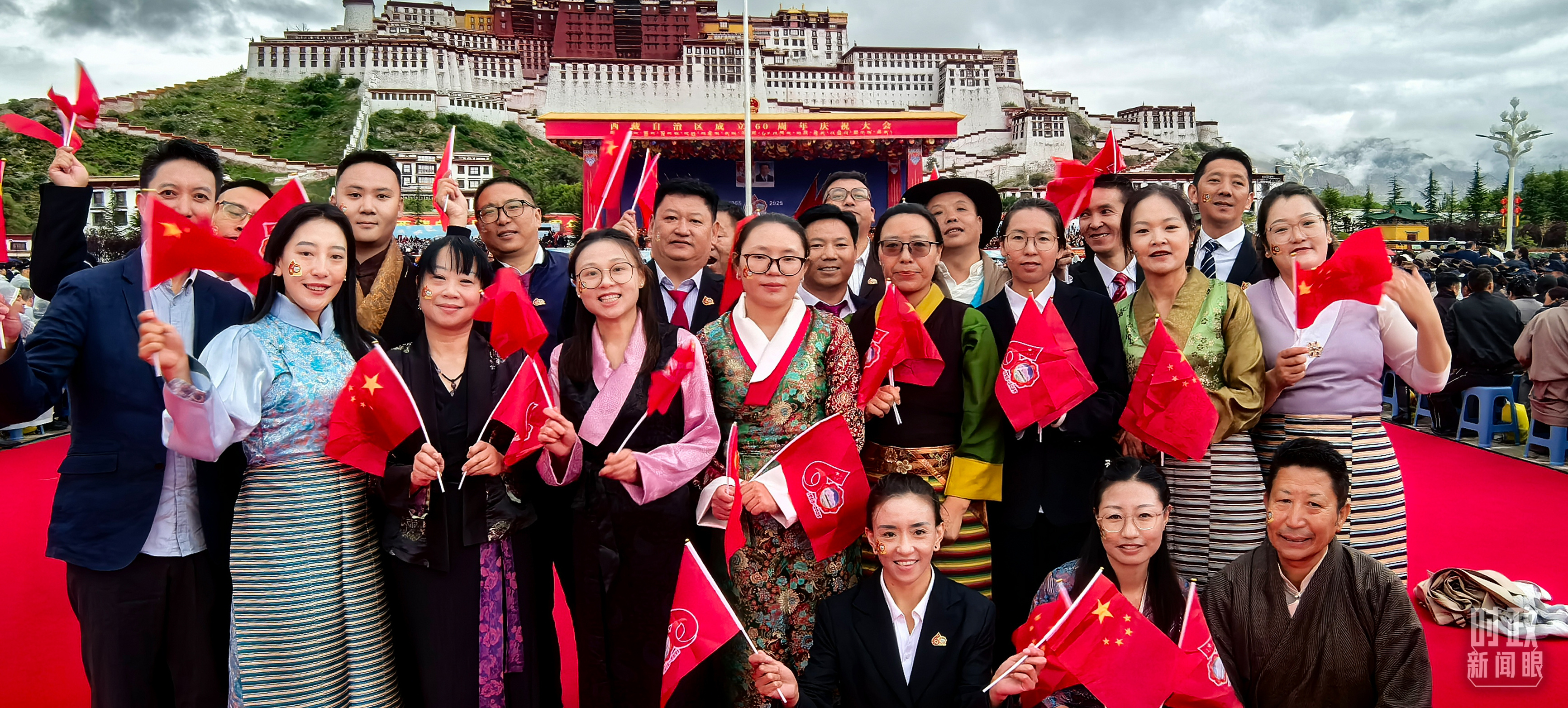 西藏自治區(qū)成立60周年慶祝大會(huì)在拉薩布達(dá)拉宮廣場(chǎng)隆重舉行。(總臺(tái)央視記者趙化拍攝)