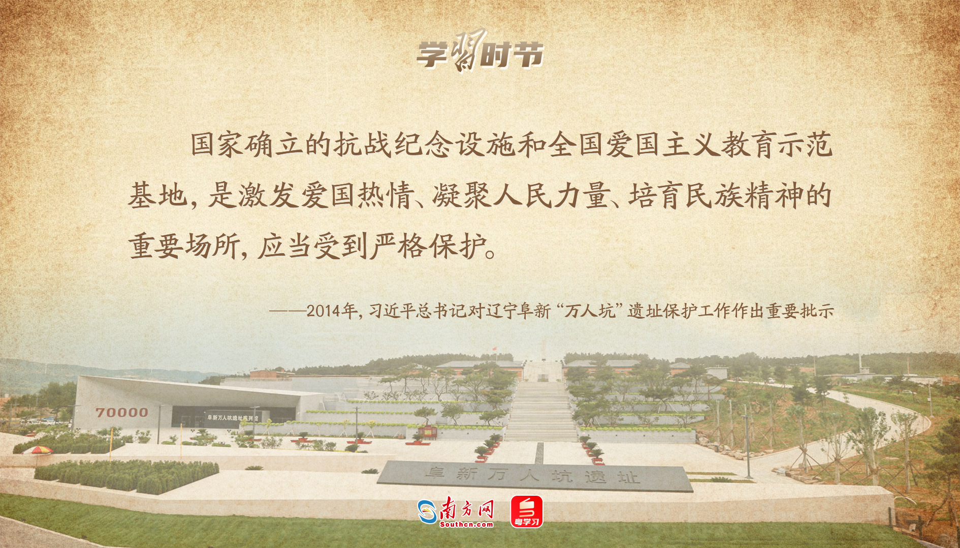 2014年9月,一份反映遼寧阜新“萬人坑”遺址遭破壞的報告送到了習近平總書記的案頭。習近平總書記對此寫下大段批示,要求遼寧省委、省政府和國家文物局要以高度的政治責任感,迅速落實對阜新“萬人坑”死難礦工紀念館的維修改善工作,盡早恢復其愛國主義教育基地功能?!坝蓄愃聘沸虑闆r的,務必抓緊進行維修,切實做好保護、利用工作,充分發(fā)揮其在加強愛國主義教育、培育社會主義核心價值觀中的重要作用?!?/p>