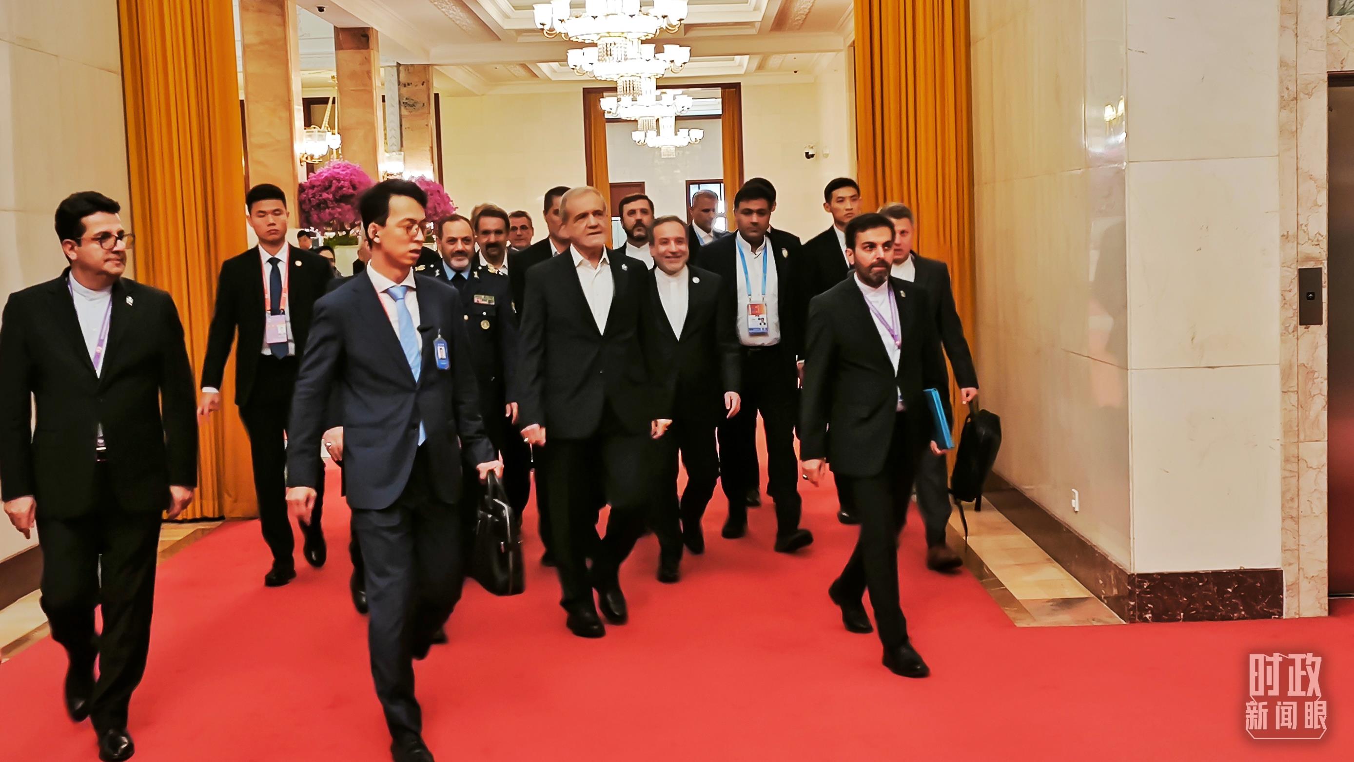 △伊朗總統(tǒng)佩澤希齊揚走向會見廳。(總臺國廣記者蔡靖骉拍攝)