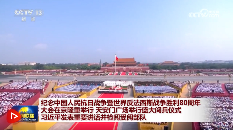 銘記偉大歷史勝利,凝聚正義和平力量。9月3日上午,紀(jì)念中國人民抗日戰(zhàn)爭暨世界反法西斯戰(zhàn)爭勝利80周年大會在北京天安門廣場隆重舉行,以盛大閱兵儀式,同世界人民一道紀(jì)念這個(gè)偉大的日子,共同開創(chuàng)更加光明的未來。中共中央總書記、國家主席、中央軍委主席習(xí)近平發(fā)表重要講話并檢閱受閱部隊(duì)。