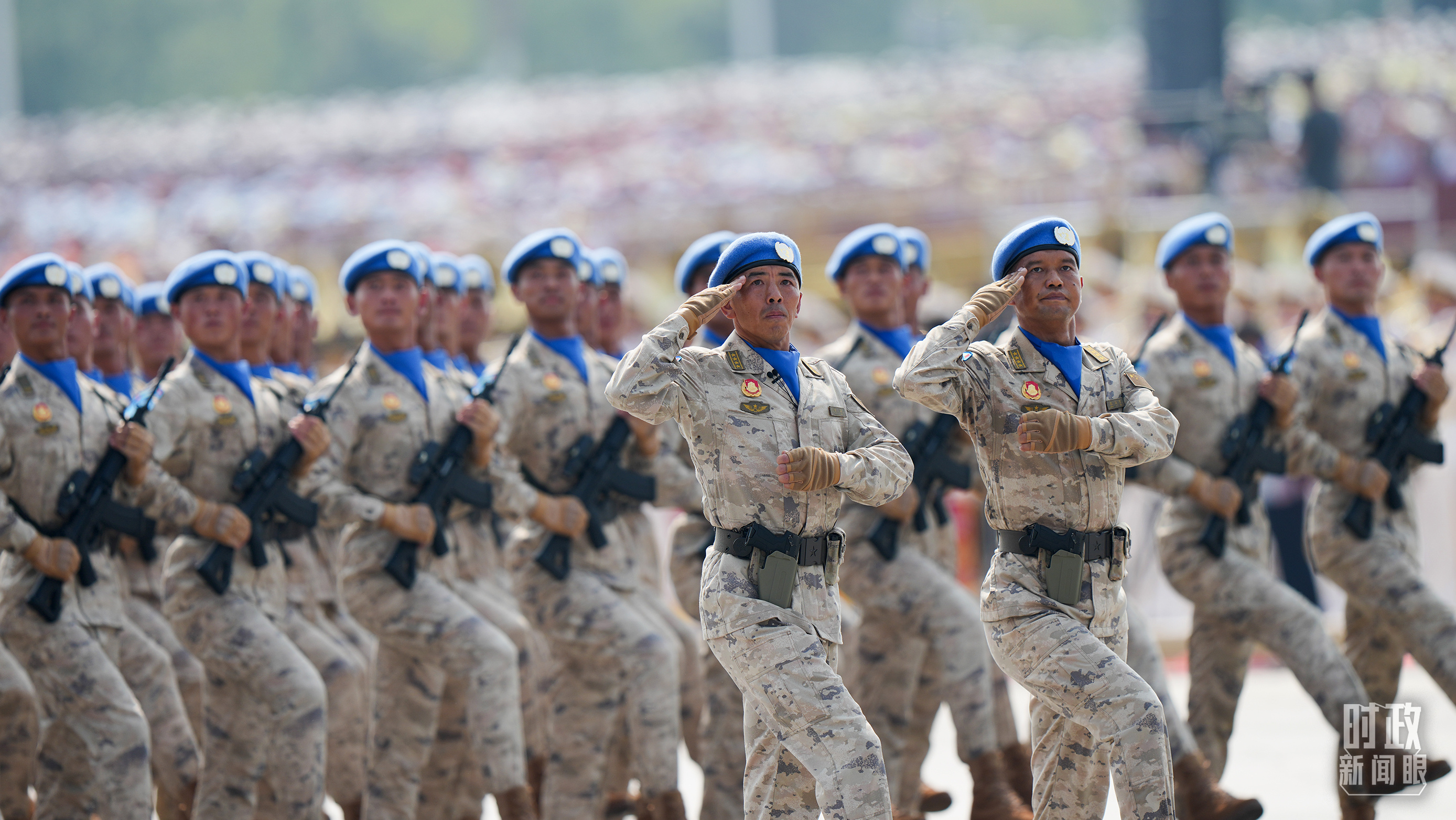 閱兵式上,維和部隊(duì)方隊(duì)闊步走來。今年是中國軍隊(duì)參加聯(lián)合國維和行動(dòng)35周年,累計(jì)派遣超過5萬名維和官兵,中國是聯(lián)合國安理會(huì)常任理事國中派出維和人員最多的國家?!爸袊{(lán)盔”不懼艱險(xiǎn)、不辱使命,以熱血鍛鑄和平盾牌,用行動(dòng)譜寫大國擔(dān)當(dāng),已經(jīng)成為守護(hù)世界和平安寧的關(guān)鍵穩(wěn)定力量。