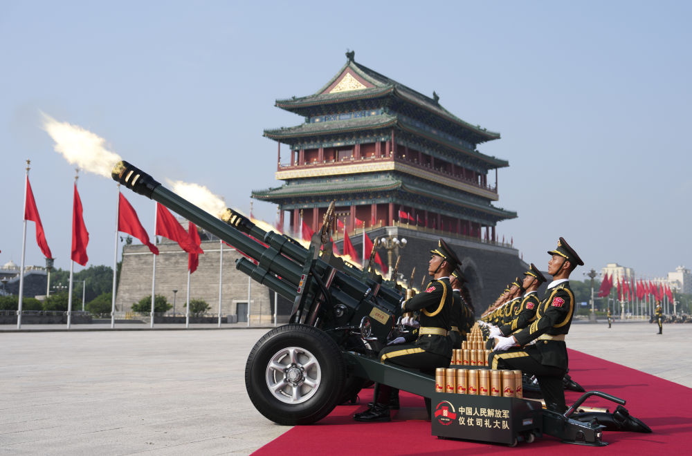 2025年9月3日,紀(jì)念中國(guó)人民抗日戰(zhàn)爭(zhēng)暨世界反法西斯戰(zhàn)爭(zhēng)勝利80周年大會(huì)在北京隆重舉行。這是禮炮在天安門廣場(chǎng)鳴響。