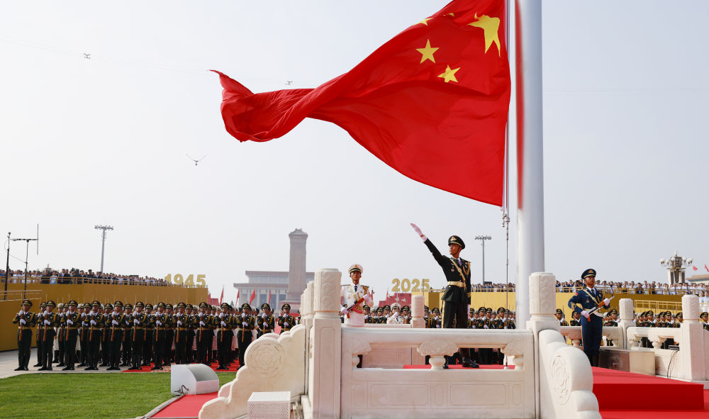 2025年9月3日,紀(jì)念中國(guó)人民抗日戰(zhàn)爭(zhēng)暨世界反法西斯戰(zhàn)爭(zhēng)勝利80周年大會(huì)在北京隆重舉行。這是天安門廣場(chǎng)舉行隆重的升國(guó)旗儀式。