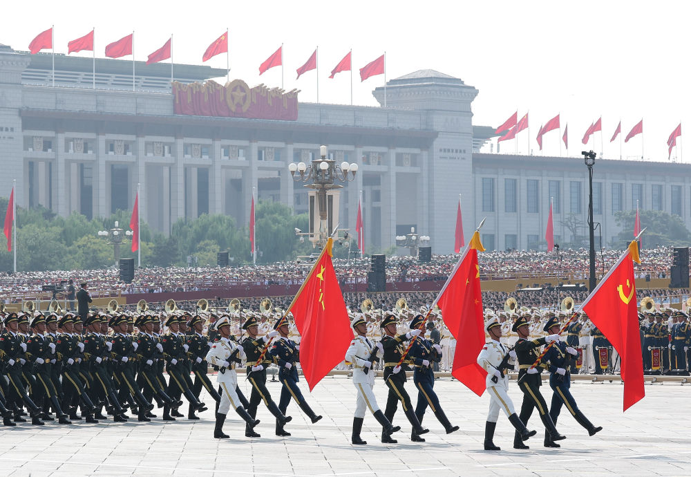2025年9月3日,紀(jì)念中國(guó)人民抗日戰(zhàn)爭(zhēng)暨世界反法西斯戰(zhàn)爭(zhēng)勝利80周年大會(huì)在北京隆重舉行。這是戰(zhàn)旗方隊(duì)接受檢閱。