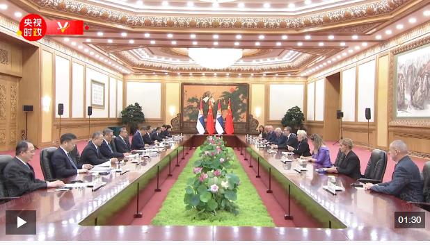 9月4日下午,國(guó)家主席習(xí)近平在北京人民大會(huì)堂會(huì)見(jiàn)來(lái)華出席紀(jì)念中國(guó)人民抗日戰(zhàn)爭(zhēng)暨世界反法西斯戰(zhàn)爭(zhēng)勝利80周年活動(dòng)的塞爾維亞總統(tǒng)武契奇。