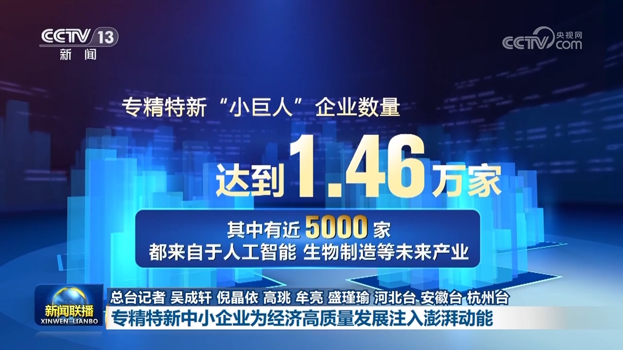 當前,我國已累計培育專精特新中小企業(yè)超過14萬家,專精特新“小巨人”企業(yè)數(shù)量達到1.46萬家,其中有近5000家都來自于人工智能、生物制造等未來產(chǎn)業(yè)。1—7月,規(guī)模以上工業(yè)專精特新“小巨人”企業(yè)增加值同比增長8.7%,增速高于全部規(guī)模以上工業(yè)2.4個百分點。