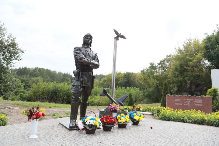 烏克蘭第聶伯河沿岸,秋日的陽光灑在庫里申科學(xué)校對(duì)面的廣場(chǎng)上。身著飛行服的蘇聯(lián)空軍志愿隊(duì)重型轟炸機(jī)大隊(duì)少校大隊(duì)長(zhǎng)庫里申科的雕塑目視遠(yuǎn)方,在他身邊,一只銅制“蘇聯(lián)雄鷹”展翅翱翔。