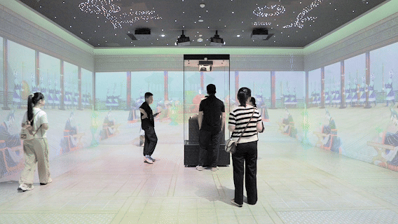 改造后的數字化何尊展廳吸引參觀者沉浸式觀看(央廣網記者 侯凱奇 攝)