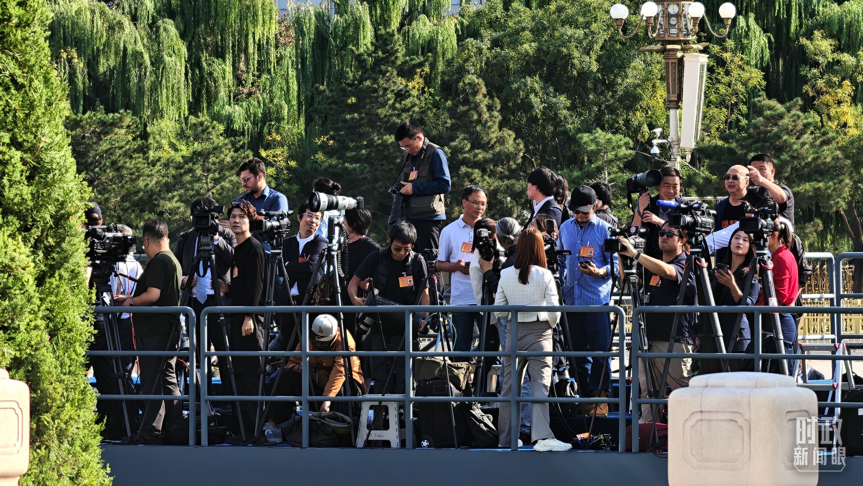 9月30日,天安門廣場上現場報道的記者。(總臺央視記者鄂介甫拍攝)