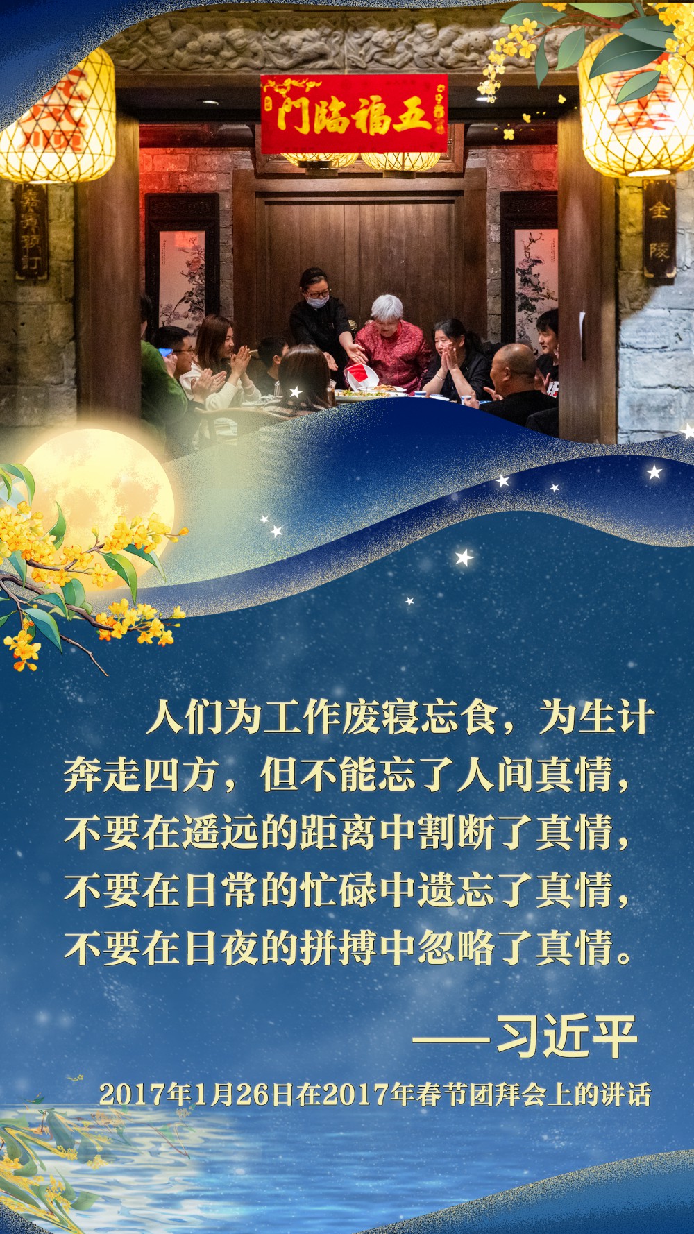 江山萬(wàn)重,皓月千里。刻在中華兒女骨血里的家國(guó)情懷,讓每一次團(tuán)聚都成為對(duì)美好生活的禮贊,讓每一份祝福都匯聚成民族奮進(jìn)的磅礴力量。