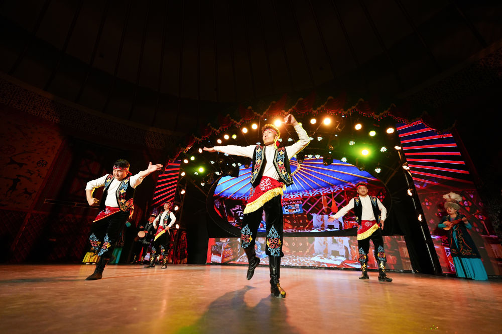 2025年5月1日,《新疆維吾爾自治區(qū)瑪納斯非物質文化遺產(chǎn)保護條例》正式實施,為保護這部列入聯(lián)合國教科文組織非遺名錄的柯爾克孜族英雄史詩提供了法規(guī)遵循。這是2025年4月22日,演員在位于新疆阿圖什市的瑪納斯史詩大劇院為游客表演。