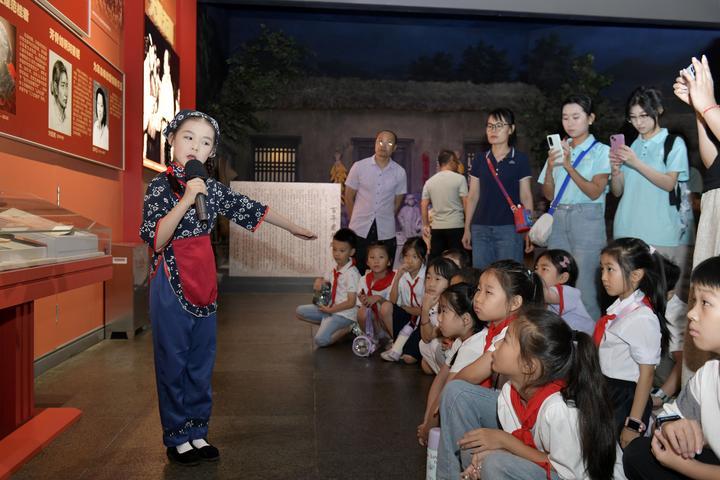 2025年8月7日,在山東省臨沂市沂蒙革命紀(jì)念館,沂蒙紅孩子文藝先鋒隊(duì)的房沫昕在講述紅色故事《沂蒙紅嫂祖秀蓮》。2024年9月,位于沂蒙革命老區(qū)的山東省臨沂市以“傳承沂蒙精神”為宗旨組建沂蒙紅孩子文藝先鋒隊(duì),通過歌舞、朗誦、故事講述、舞臺(tái)劇等紅色主題文藝節(jié)目,增強(qiáng)紅色文化感染力,不斷為紅色基因代代相傳注入新生力量。2025年5月12日,云南省昭通市威信縣第一中學(xué)學(xué)生在大屏上紅色研學(xué)實(shí)踐基地體驗(yàn)編織草鞋。200余名學(xué)生在紅色研學(xué)實(shí)踐基地親手編織草鞋、制作蠟染,并參觀了扎西會(huì)議舊址、紅軍長(zhǎng)征過云南情景體驗(yàn)館,在實(shí)踐互動(dòng)中重溫紅色革命歷史。威信縣立足紅色文化資源優(yōu)勢(shì),先后建成扎西會(huì)議紀(jì)念館、紅軍長(zhǎng)征標(biāo)語(yǔ)館等紅色文化展館,以舊址遺跡為“教室”,以文物史料為“教材”,設(shè)計(jì)開發(fā)多門精品研學(xué)課程和線路,在深入開展紅色研學(xué)系列活動(dòng)中傳承紅色基因。