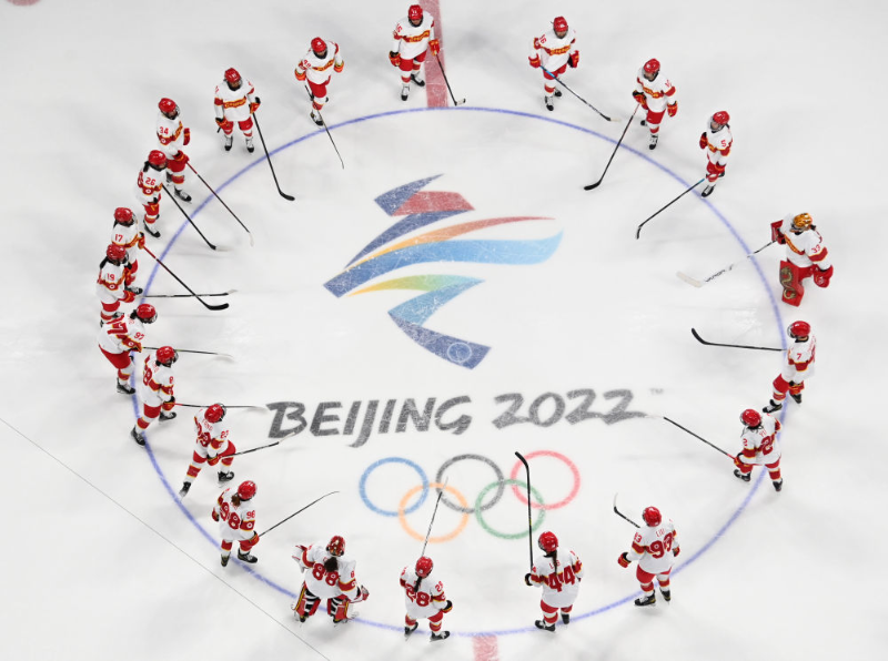 北京2022年冬奧會是迄今女性參賽比例最高、參與項目最多的一屆冬奧會。圖為中國國家女子冰球隊在賽場。