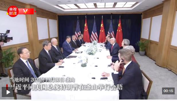 當?shù)貢r間10月30日上午,國家主席習(xí)近平在釜山同美國總統(tǒng)特朗普舉行會晤。