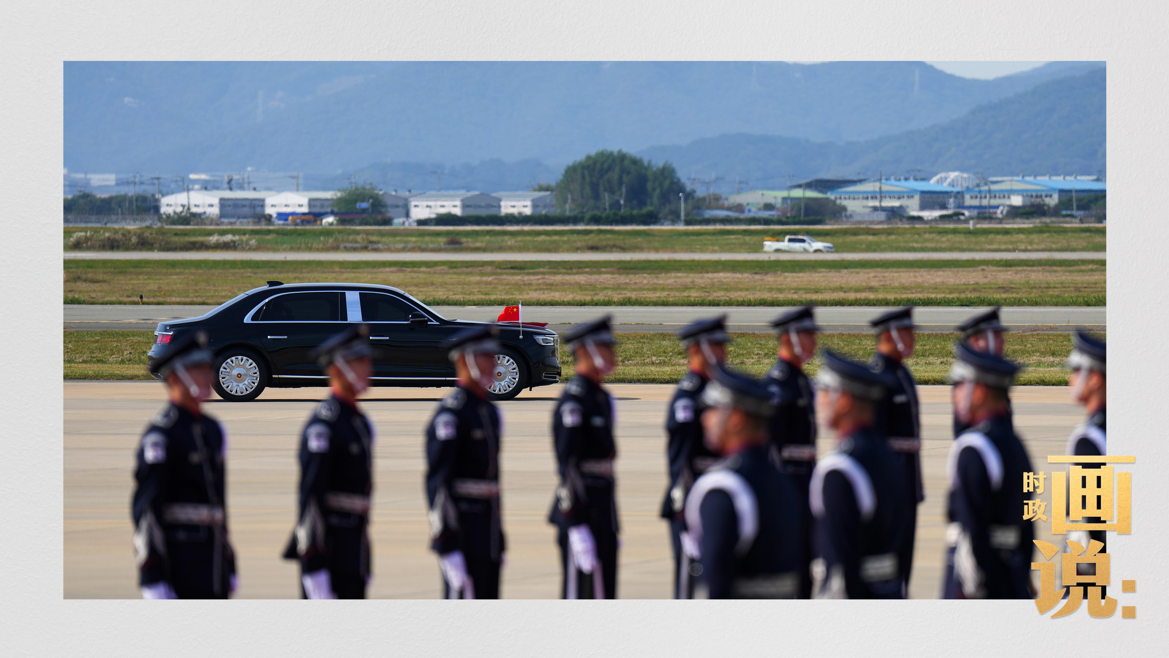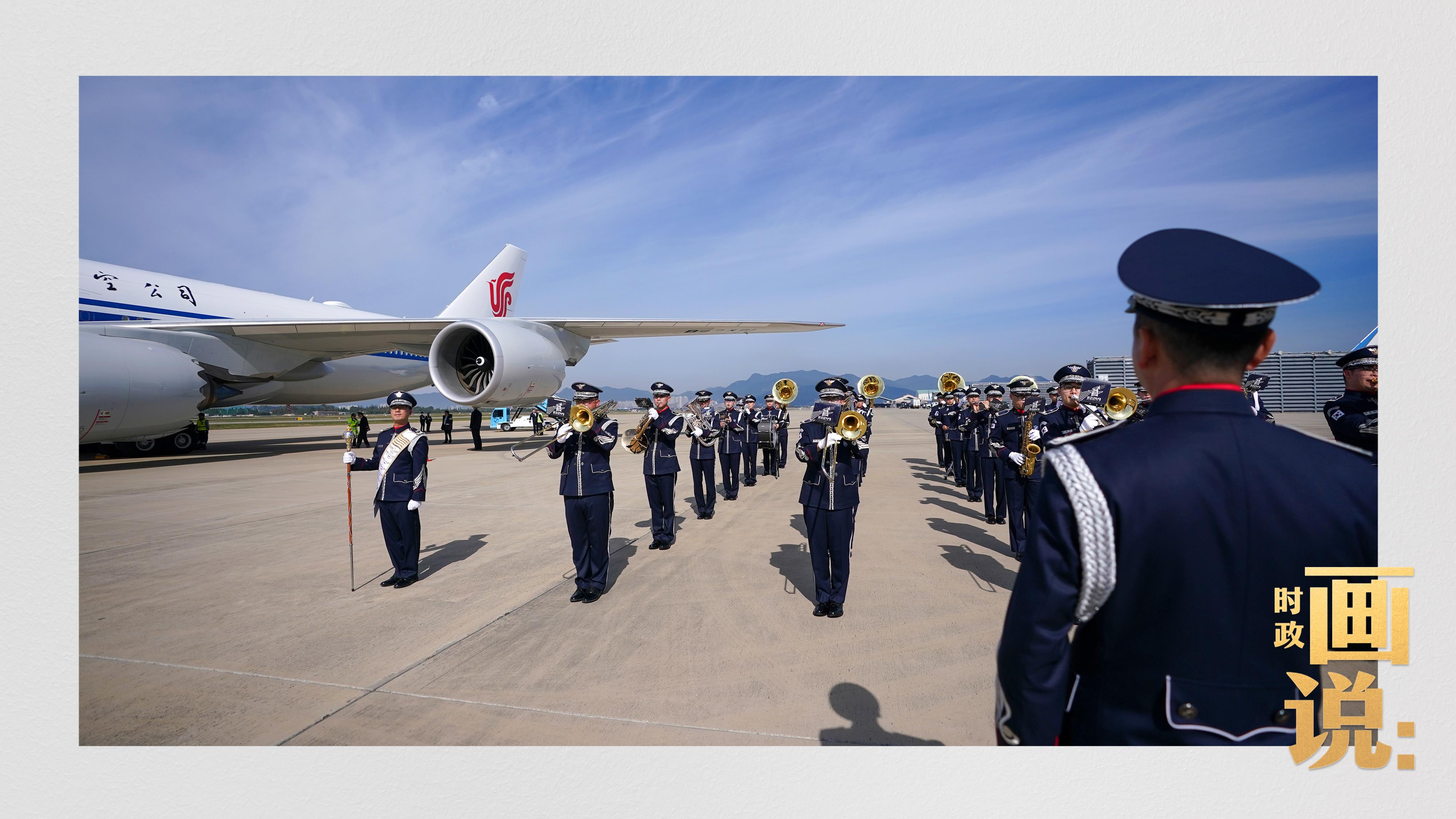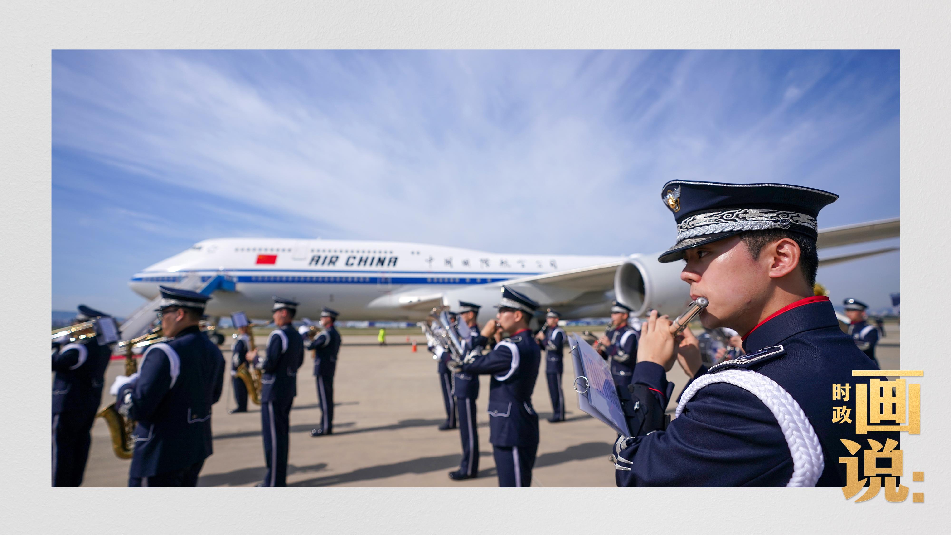 習(xí)近平抵達(dá)釜山金海國際機場時,韓國外長趙顯等高級官員熱情迎接。禮兵分列紅地毯兩側(cè)致敬,軍樂團演奏行進(jìn)樂,機場鳴放21響禮炮。