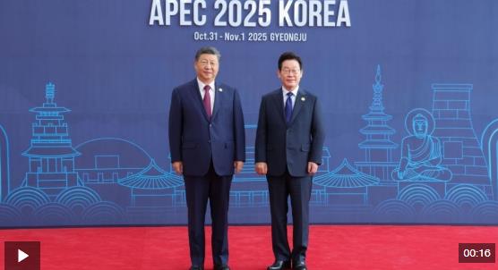 習(xí)近平主席抵達(dá)時(shí),韓國總統(tǒng)李在明熱情迎接。兩國元首握手、合影,留下珍貴的“APEC瞬間”。隨后,兩位領(lǐng)導(dǎo)人微笑交談,共同步入會(huì)場(chǎng)。
