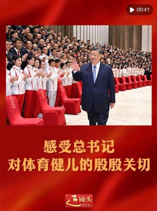 習近平總書記高度重視和關心體育事業(yè),黨的十八大以來多次寄語中國體育健兒。每次見到大家,總書記都會點贊運動員們的優(yōu)異成績和拼搏精神,勉勵大家奮力拼搏、再創(chuàng)佳績,為建設體育強國作出新貢獻。