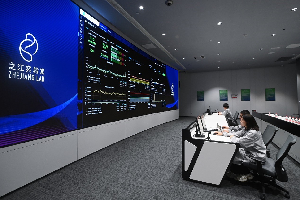 之江實(shí)驗(yàn)室計(jì)算與數(shù)據(jù)中心的工程師通過“之江云”系統(tǒng)監(jiān)測(cè)服務(wù)器集群的運(yùn)行狀態(tài)。新華社記者 黃宗治 攝
