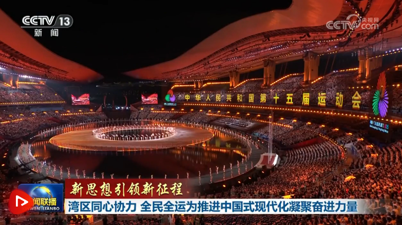 央視網(wǎng)消息(新聞聯(lián)播):習近平總書記近日在廣東考察并出席第十五屆全運會開幕式時指出,通過舉辦這場盛會,可以激發(fā)愛國熱情,拉緊精神紐帶,促進開放合作、互利共贏,為大灣區(qū)建設營造良好氛圍。從11月9日至21日,由粵港澳三地共同舉辦的這屆全運會,燃動大灣區(qū),生動詮釋體育的激情與魅力;三地同心協(xié)力、交流融合,讓大灣區(qū)煥發(fā)新的光彩。11月21日晚,本屆全運會閉幕。這屆盛會不僅展示了新時代中國體育事業(yè)發(fā)展的新成就,也生動展現(xiàn)了中國式現(xiàn)代化在粵港澳大灣區(qū)的萬千氣象。