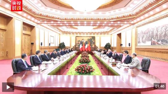 馬克龍說:“感謝主席先生,繼此前對北京和廣州的訪問后,我們雙方?jīng)Q定全方位深化中法雙邊關(guān)系。當(dāng)前國際局勢復(fù)雜多變,多邊秩序面臨嚴峻危機。在此背景下,保持中法兩國之間的對話與溝通尤為重要。我們在許多問題上有著廣泛共識,中法兩國作為負責(zé)任的大國,肩負著求同存異、構(gòu)建務(wù)實合作機制,踐行我們共同堅持的多邊主義使命。”