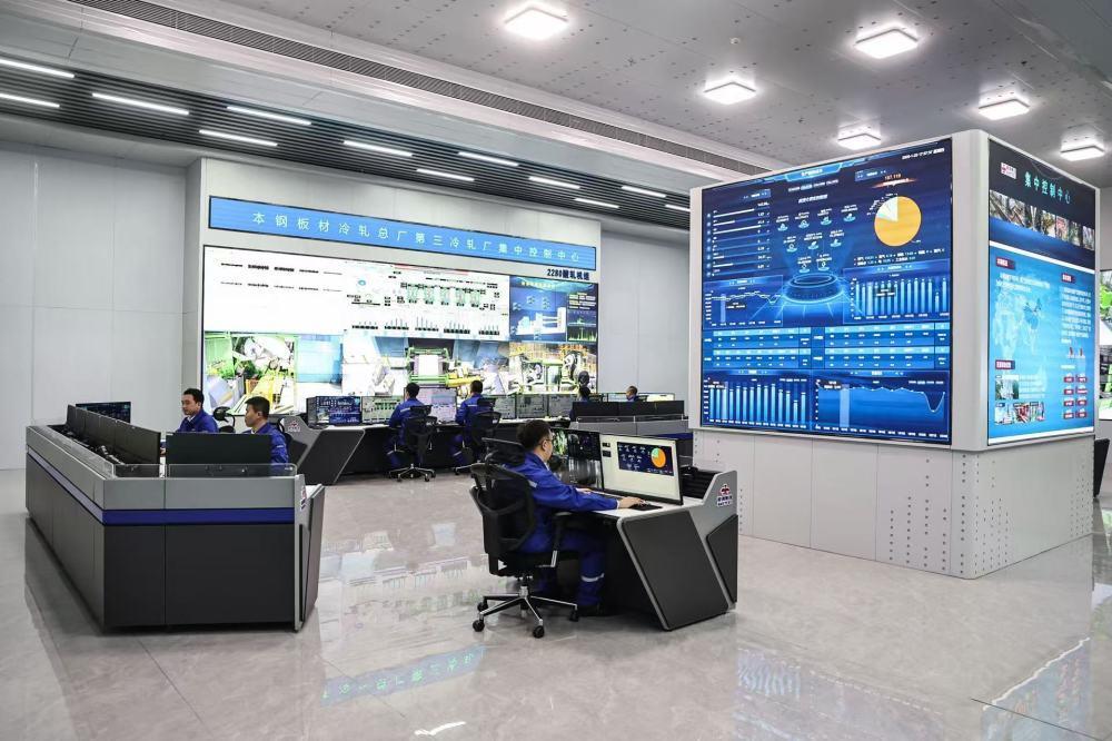 工作人員在鞍鋼集團(tuán)所屬的本鋼板材冷軋總廠第三冷軋廠集控中心監(jiān)控設(shè)備運行情況。