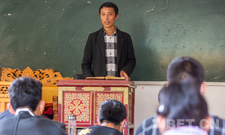 圖為倫珠正在課堂上為學生授課 攝影:趙耀